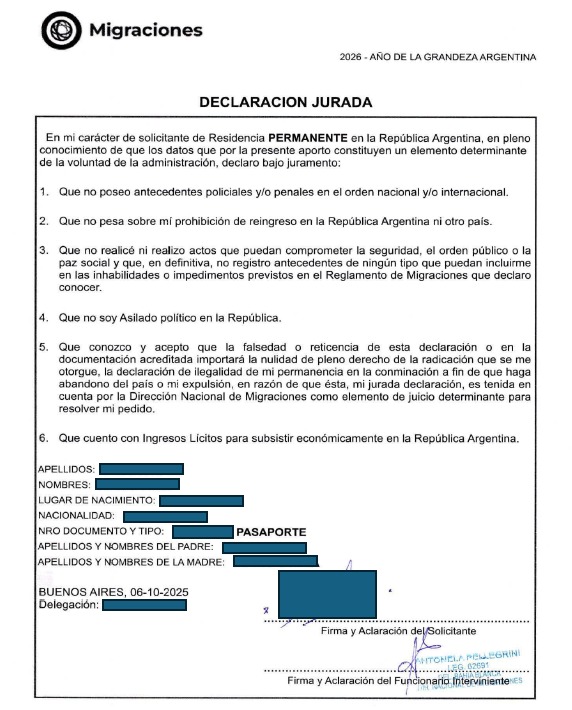 - Firmar una declaración jurada manifestando expresamente que asume el sustento económico
