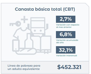Aquí debajo se resalta el monto de CBT para un hogar unipersonal (una sola persona). En caso de ser más miembros en el grupo familiar conviviente, los montos varían (según lo establecido en la imagen precedente).