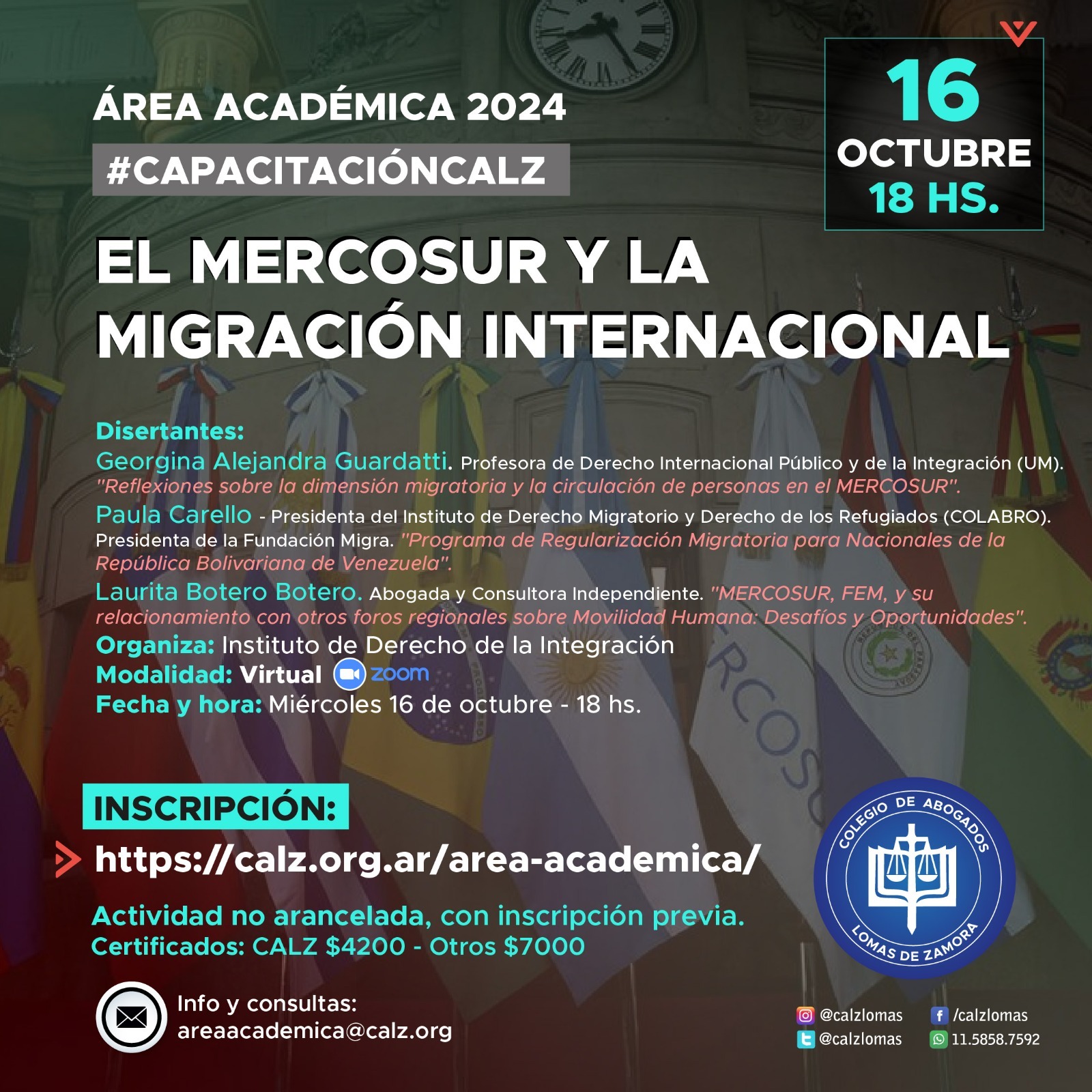 Esta semana, Paula Carello, al frente de Lux Brumalis, tuvo el agrado de disertar en un conversatorio sobre «El MERCOSUR y la Migración Internacional», junto a la Dra. Georgina Alejandra Guardatti y la Dra. Laurita Botero Botero, organizado por el Instituto de Derecho Comunitario y de la Integración del Colegio de Abogados de Lomas de Zamora dirigido por el Dr. Alberto Biglieri.